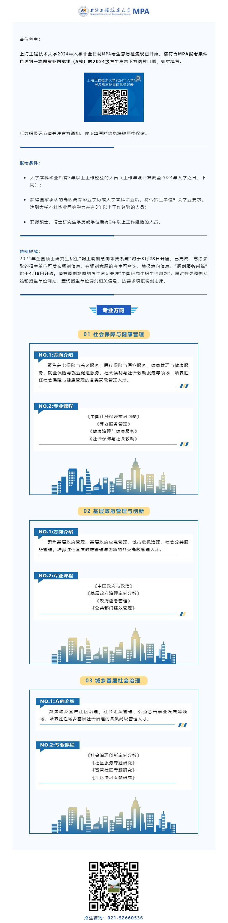 以上就是小編整理“2024考研調劑:上海工程技術大學2024年入學MPA考生意愿征集”的全部內容,想了解更多調劑信息,請持續關注本網站。