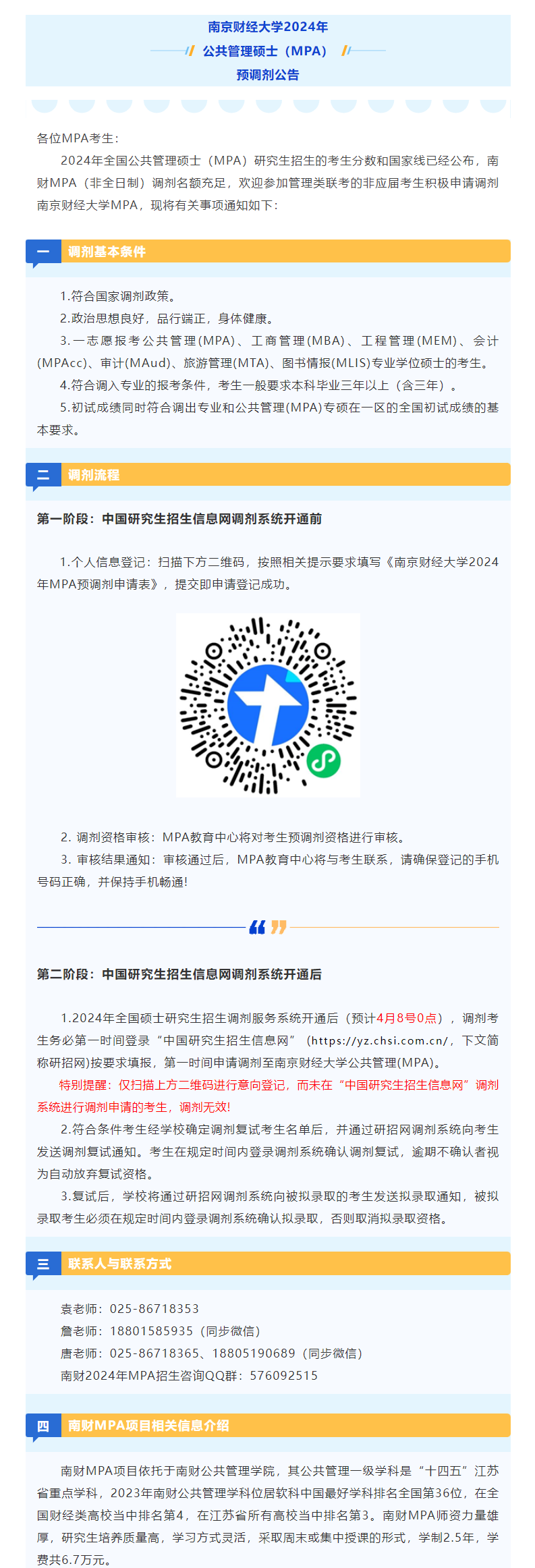 2024考研預(yù)調(diào)劑:南京財(cái)經(jīng)大學(xué)2024年公共管理碩士(MPA)預(yù)調(diào)劑公告