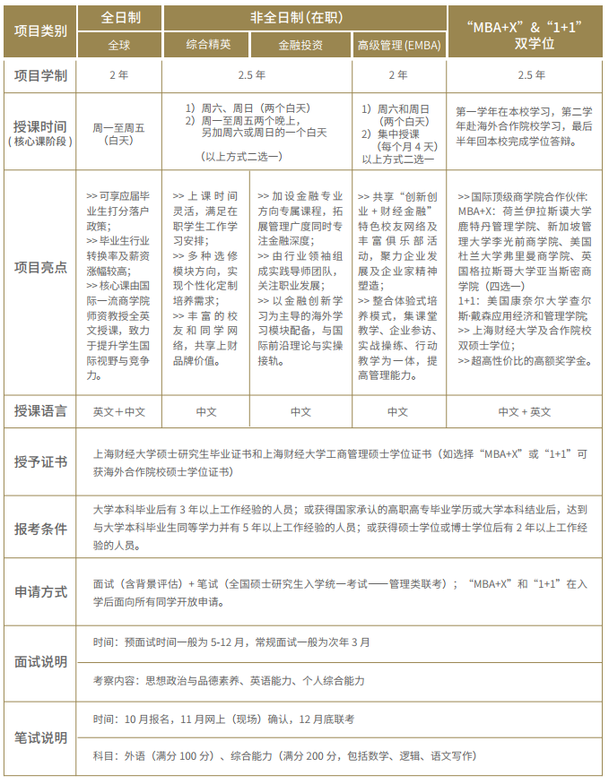2022年入學(xué)上財(cái)MBA和EMBA項(xiàng)目概覽