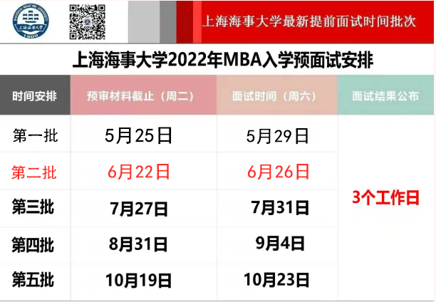 以上就是“2022MBA提前面試:上海海事大學2022年入學MBA提前批面試報名通道開啟”,更多相關信息,請持續關注本網站,祝大家順利上岸!