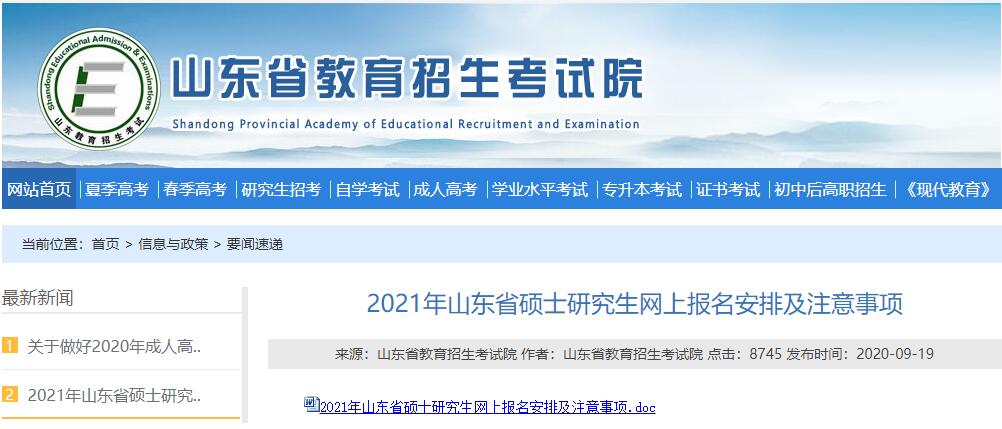 原文標題:2021年山東省碩士研究生網上報名安排及注意事項