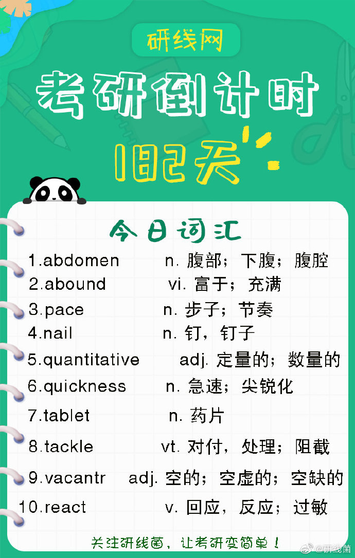以上是研線網為考生整理的“2020考研英語詞匯高頻詞匯(3)”相關內容,希望對大家有幫助,研線網小編預祝大家都能取得好成績!更多英語詞匯相關內容盡在研線網考研詞匯欄目。