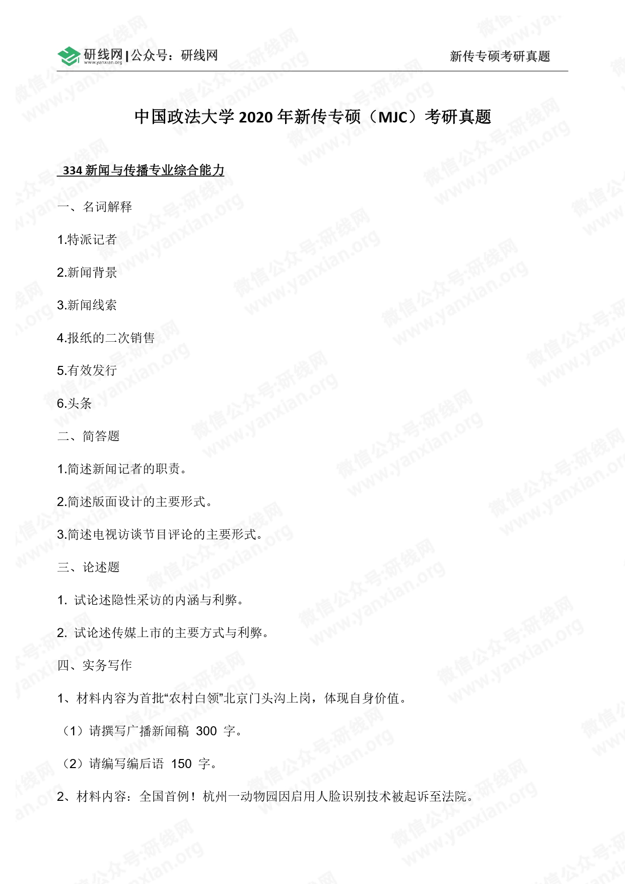 科目三:334新聞與傳播專(zhuān)業(yè)綜合能力(滿(mǎn)分150分)