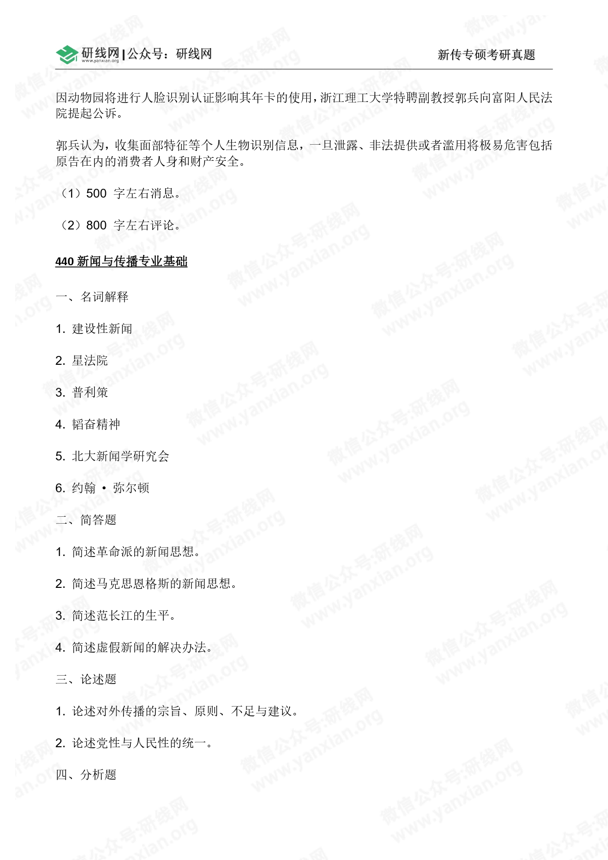 440 新聞與傳播專(zhuān)業(yè)基礎(chǔ)