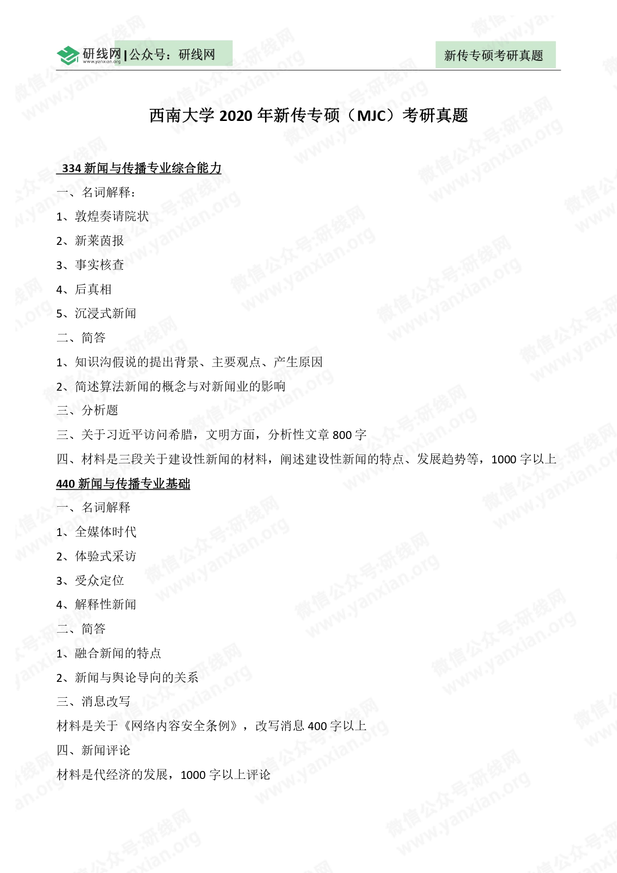 為了方便2021的同學(xué)們選出最適合自己的院校,研線網(wǎng)會計、金融、法律、新傳碩士擇校專欄持續(xù)更新中。今天給大家推薦的新傳專碩招生院校是西南大學(xué)。