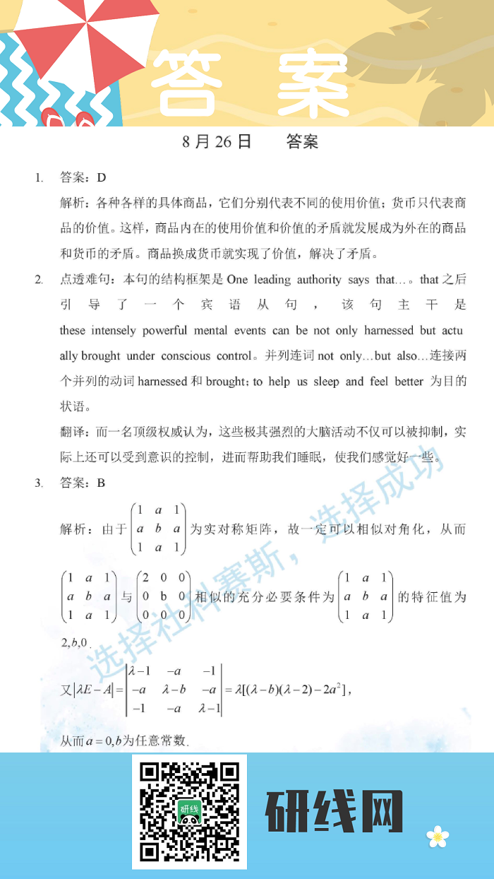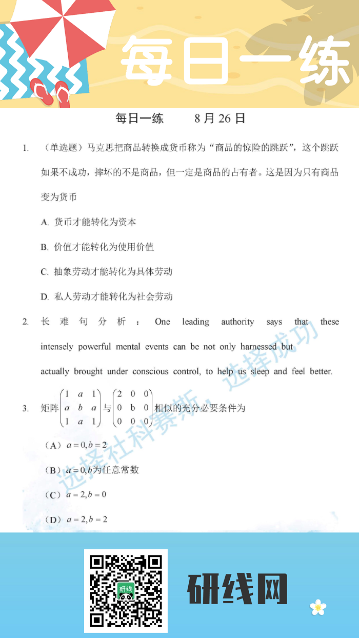 8月26日:2020考研學碩每日一練以及答案