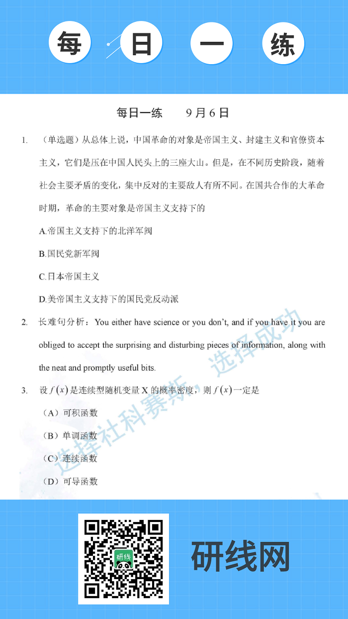 以上就是今日每日一練的全部內容,跟著每日一練,考研輕松復習!更多考試練習,點擊考研每日一練