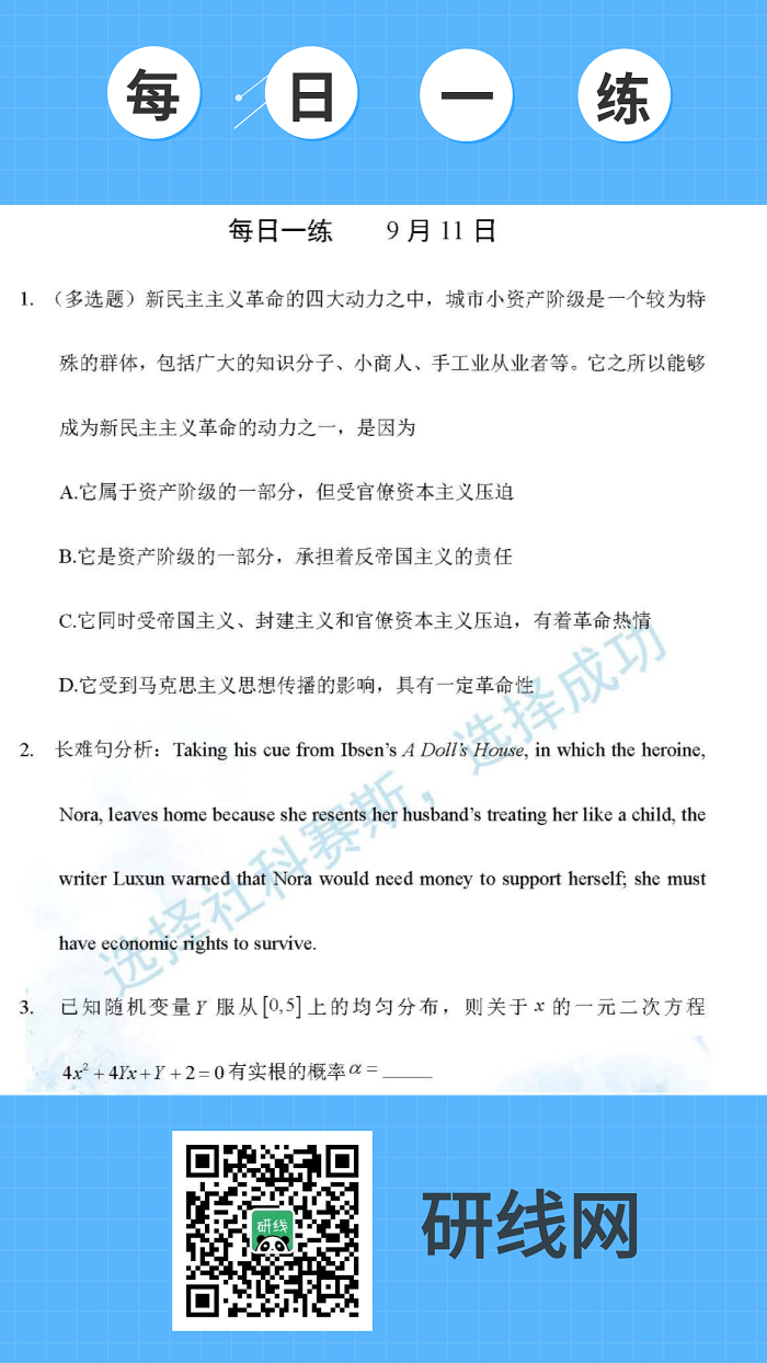 以上就是今日每日一練的全部?jī)?nèi)容,跟著每日一練,考研輕松復(fù)習(xí)!更多考試練習(xí),點(diǎn)擊考研每日一練!