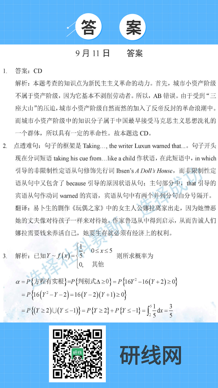 9月11日:2020考研學(xué)碩每日一練以及答案