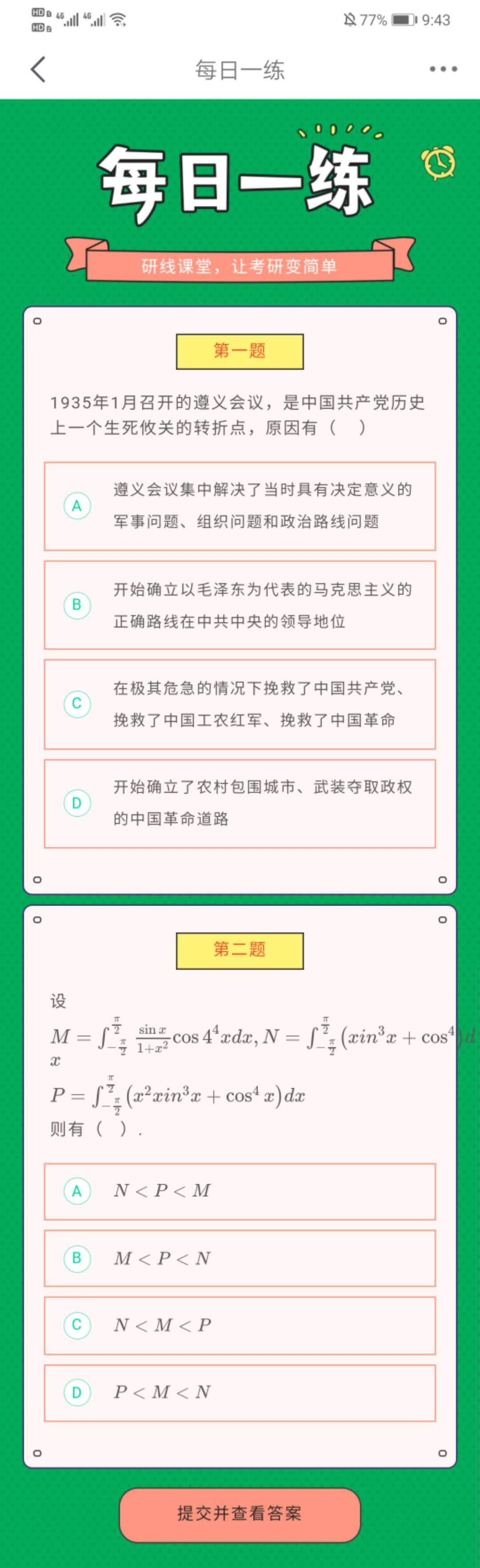 點擊進入:研線課堂萬題庫,每日習題不重復。全面題型任你刷,真題解析隨便看。