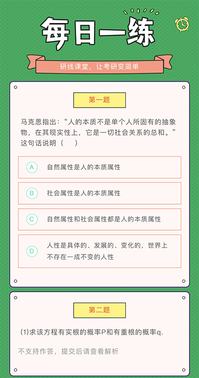 以上就是今日每日一練的全部內容,跟著每日一練,考研輕松復習!更多考試練習,點擊考研每日一練!
