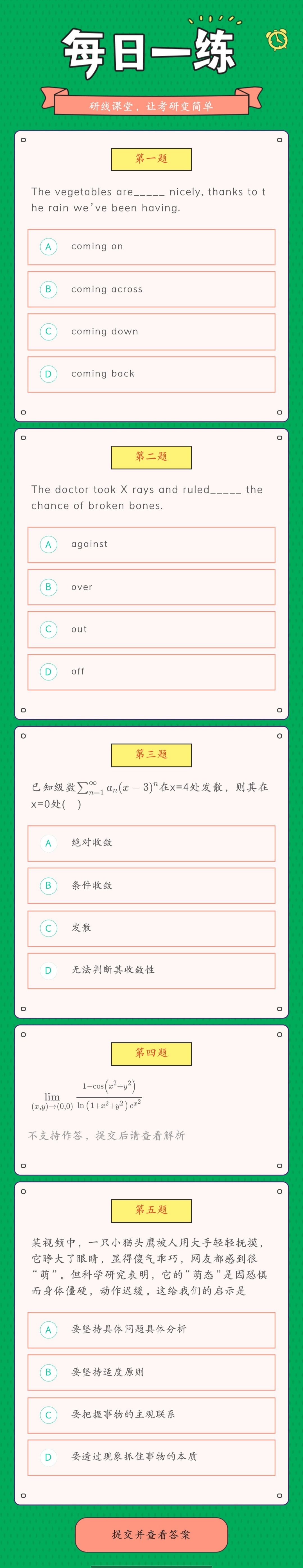 為了更好的復習和鞏固已經學過的知識,研線網小編為大家整理出幾道題,作為每日的練習,希望能夠幫助到同學們哦!