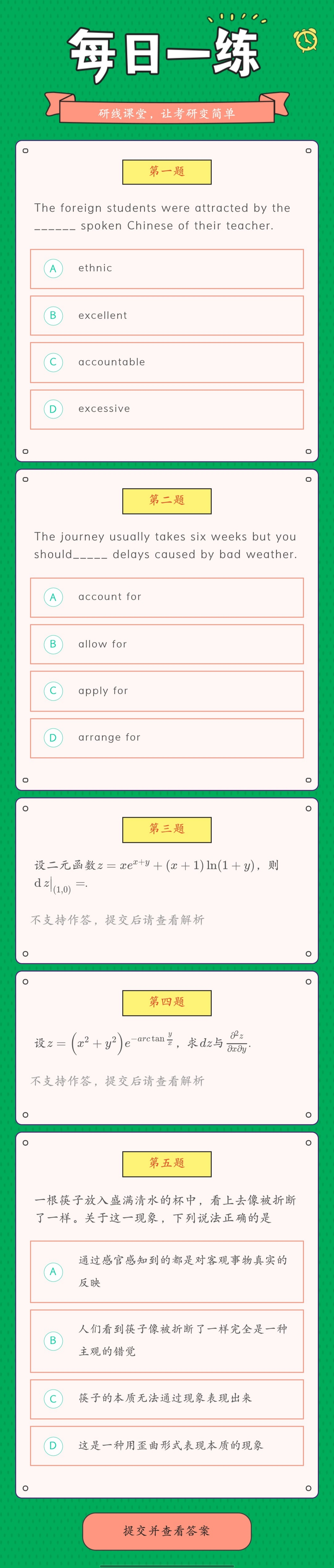 以上就是今日每日一練的全部內容,跟著每日一練,考研輕松復習!更多考試練習,點擊考研每日一練
