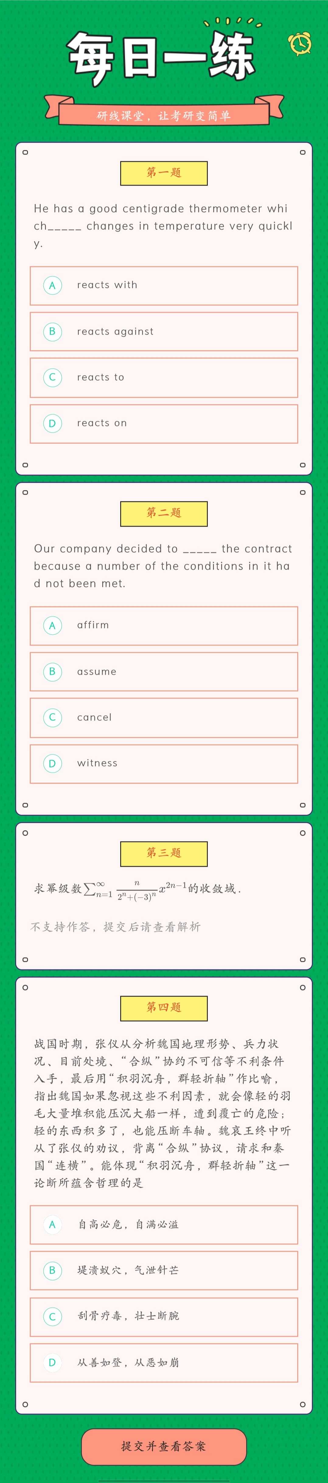 為了更好的復習和鞏固已經學過的知識,研線網小編為大家整理出幾道題,作為每日的練習,希望能夠幫助到同學們哦!