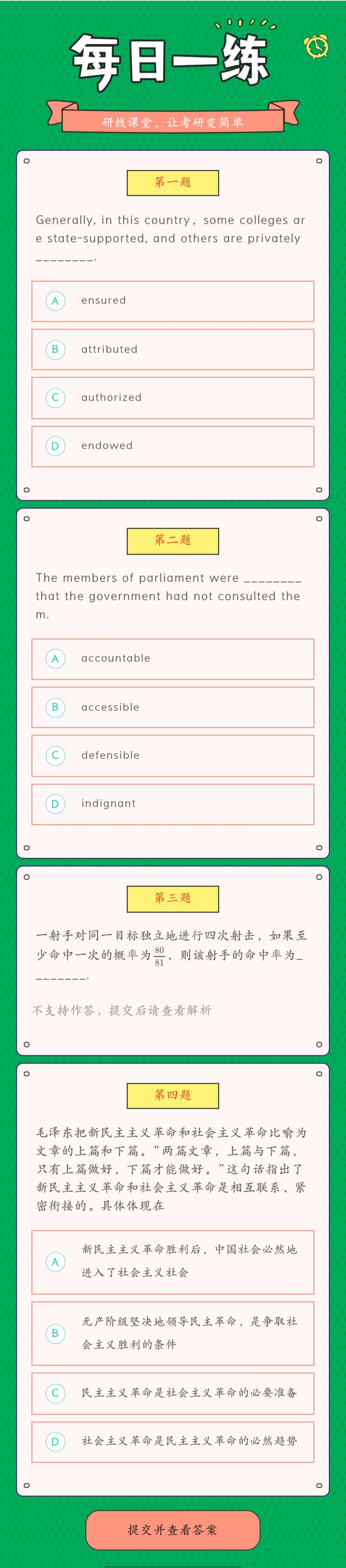 點擊進入:研線課堂萬題庫,每日習題不重復。全面題型任你刷,真題解析隨便看。