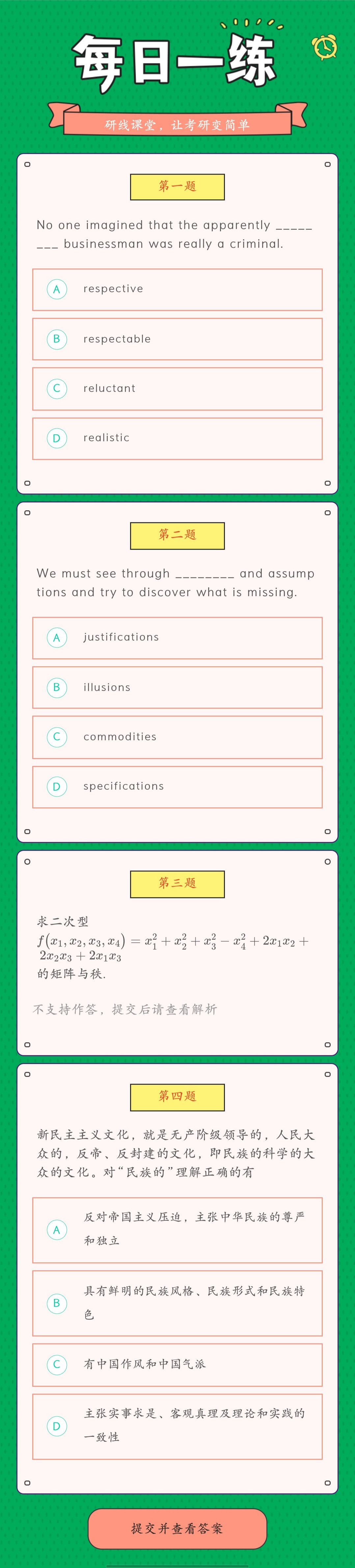 為了更好的復習和鞏固已經學過的知識,研線網小編為大家整理出幾道題,作為每日的練習,希望能夠幫助到同學們哦!
