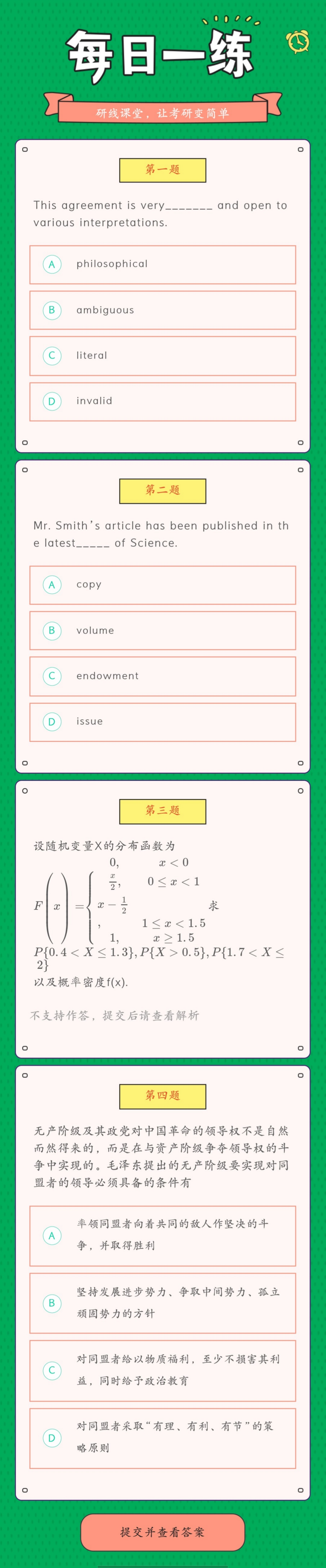 點(diǎn)擊進(jìn)入:研線課堂萬(wàn)題庫(kù),每日習(xí)題不重復(fù)。全面題型任你刷,真題解析隨便看。