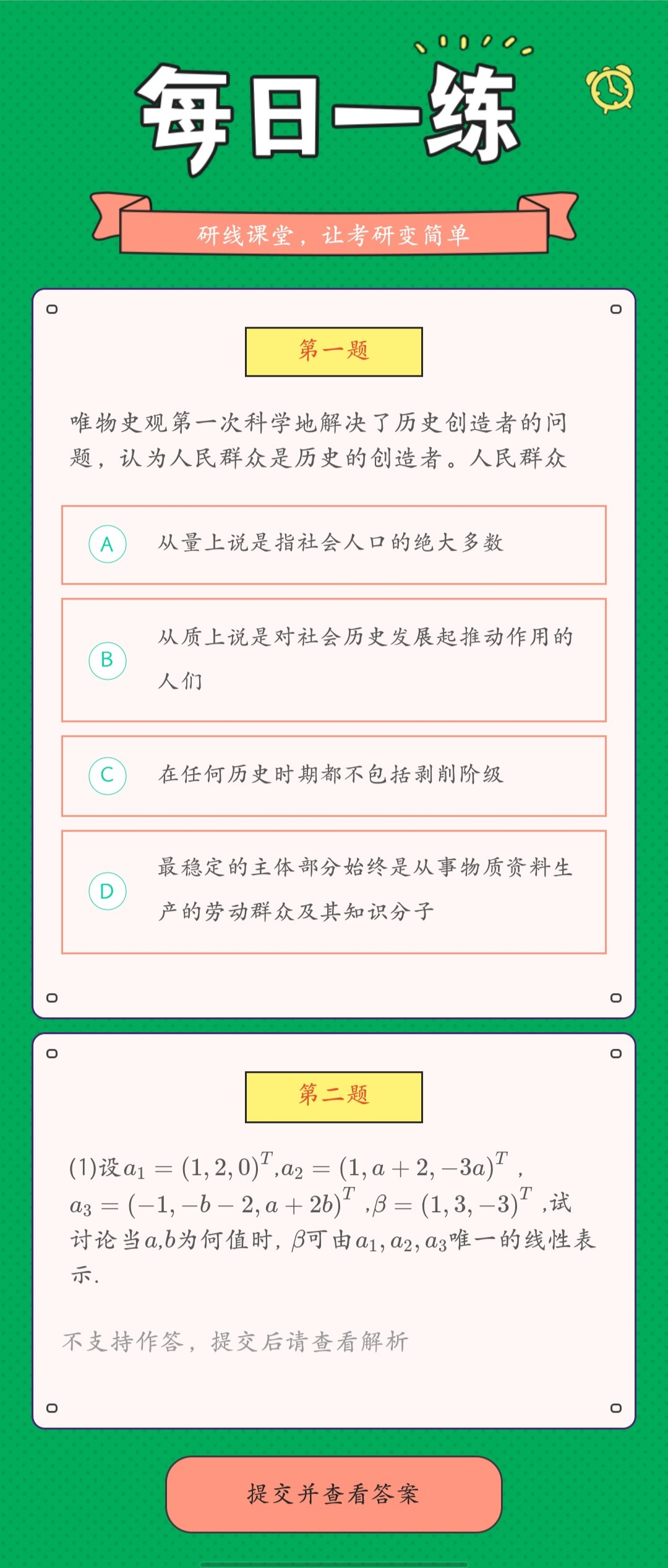 點擊進入:研線課堂萬題庫,每日習題不重復。全面題型任你刷,真題解析隨便看。