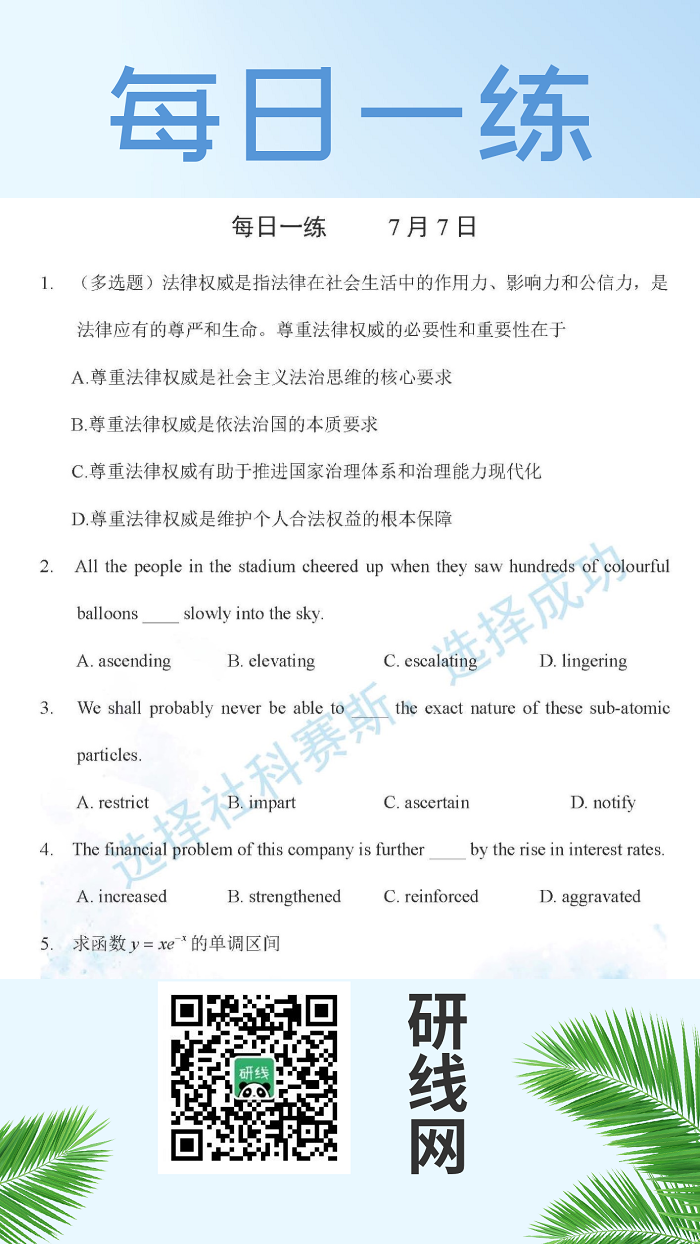 以上就是今日每日一練的全部內(nèi)容,跟著每日一練,考研輕松復(fù)習(xí)!更多考試練習(xí),點擊考研每日一練!