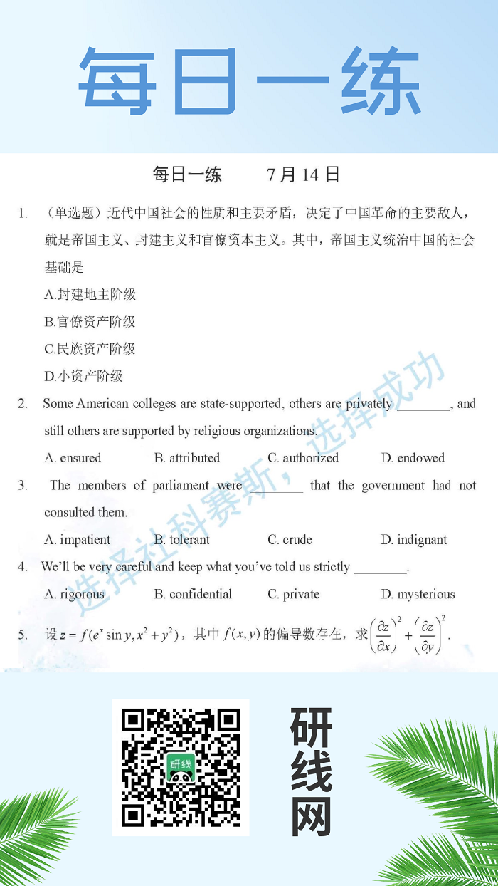 以上就是今日每日一練的全部內容,跟著每日一練,考研輕松復習!更多考試練習,點擊考研每日一練