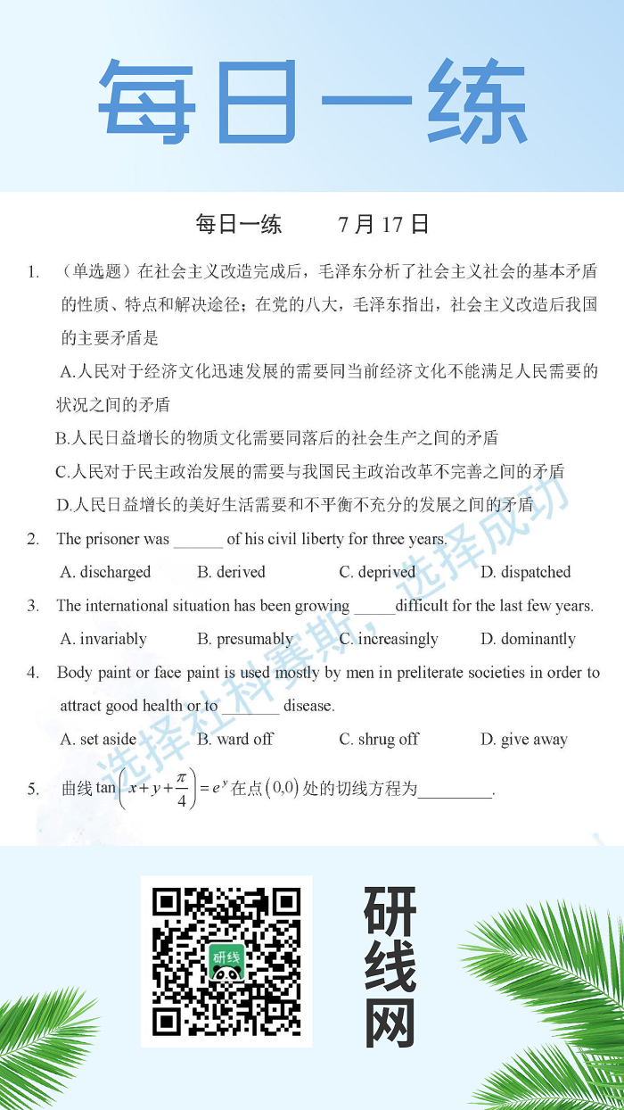 7月17日:2020考研學碩每日一練以及答案