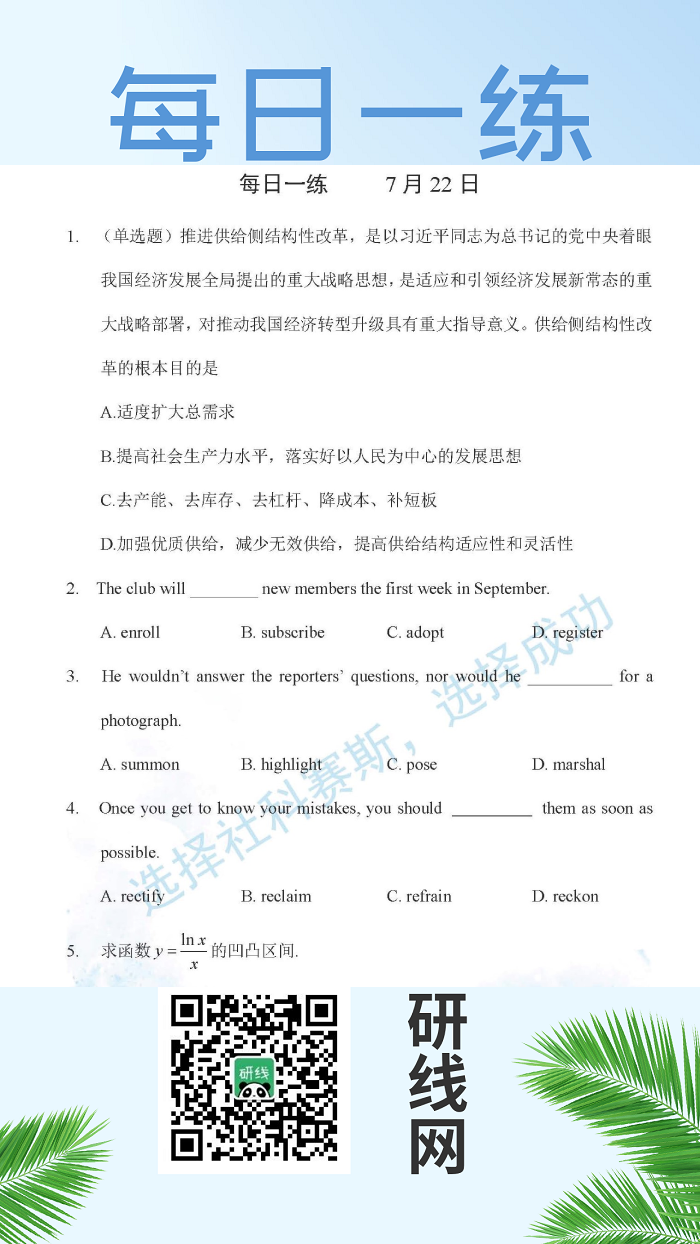以上就是今日每日一練的全部內容,跟著每日一練,考研輕松復習!更多考試練習,點擊考研每日一練!