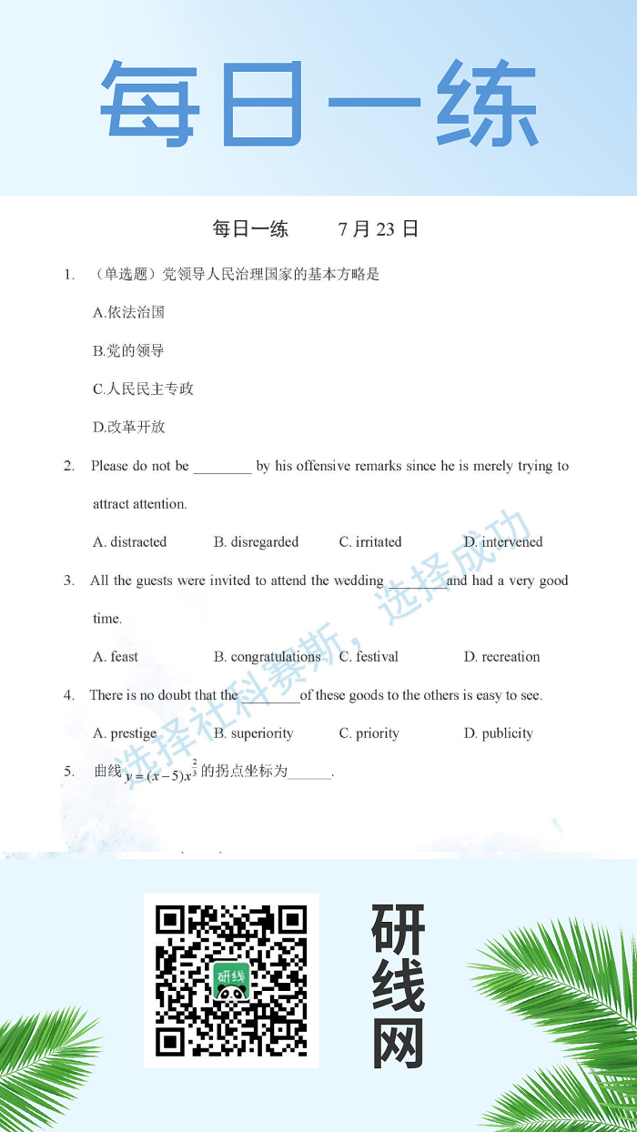 以上就是今日每日一練的全部內容,跟著每日一練,考研輕松復習!更多考試練習,點擊考研每日一練