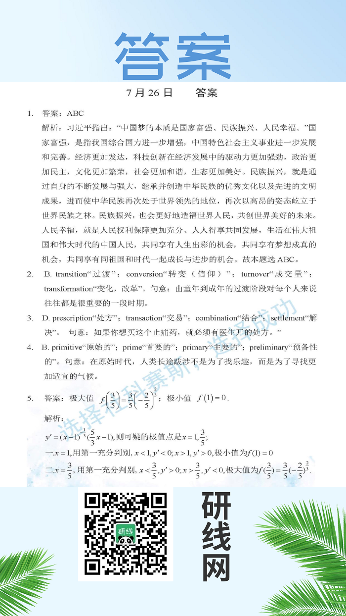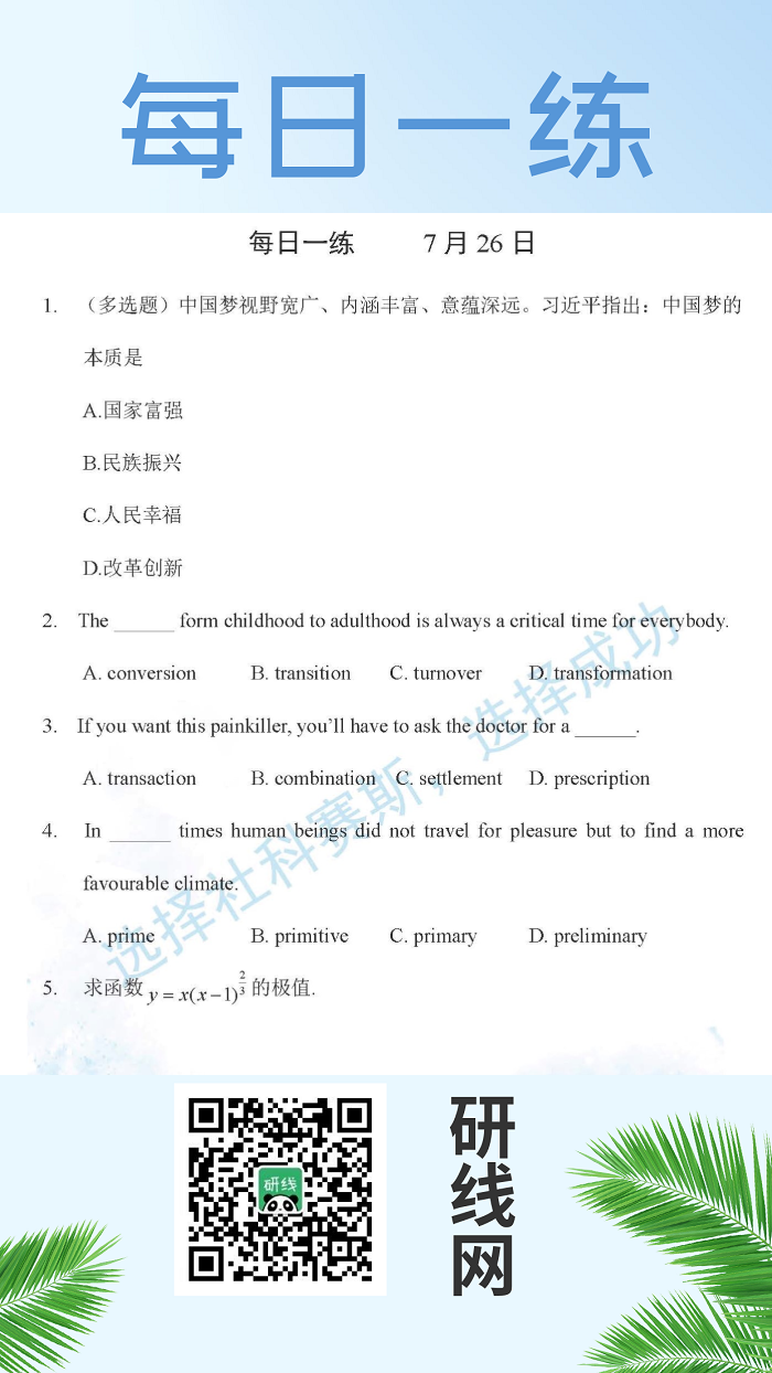 以上就是今日每日一練的全部內(nèi)容,跟著每日一練,考研輕松復習!更多考試練習,點擊考研每日一練!