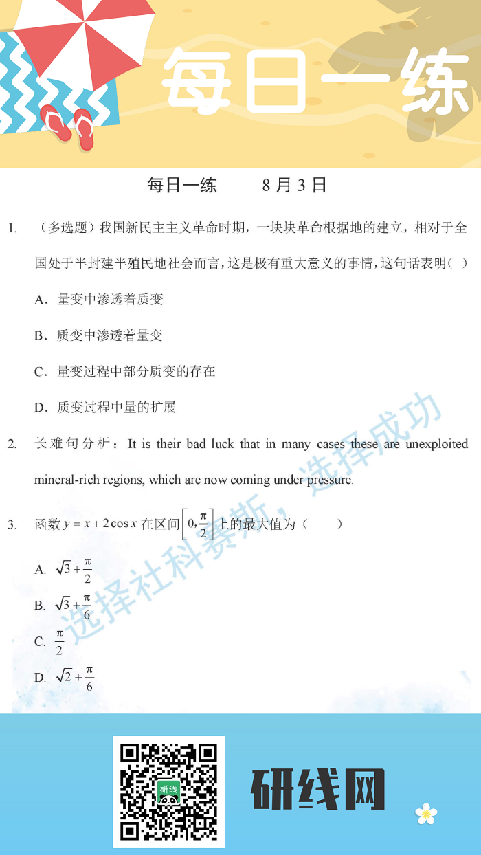 為了更好的復習和鞏固已經學過的知識,研線網小編為大家整理出幾道題,作為每日的練習,希望能夠幫助到同學們哦!