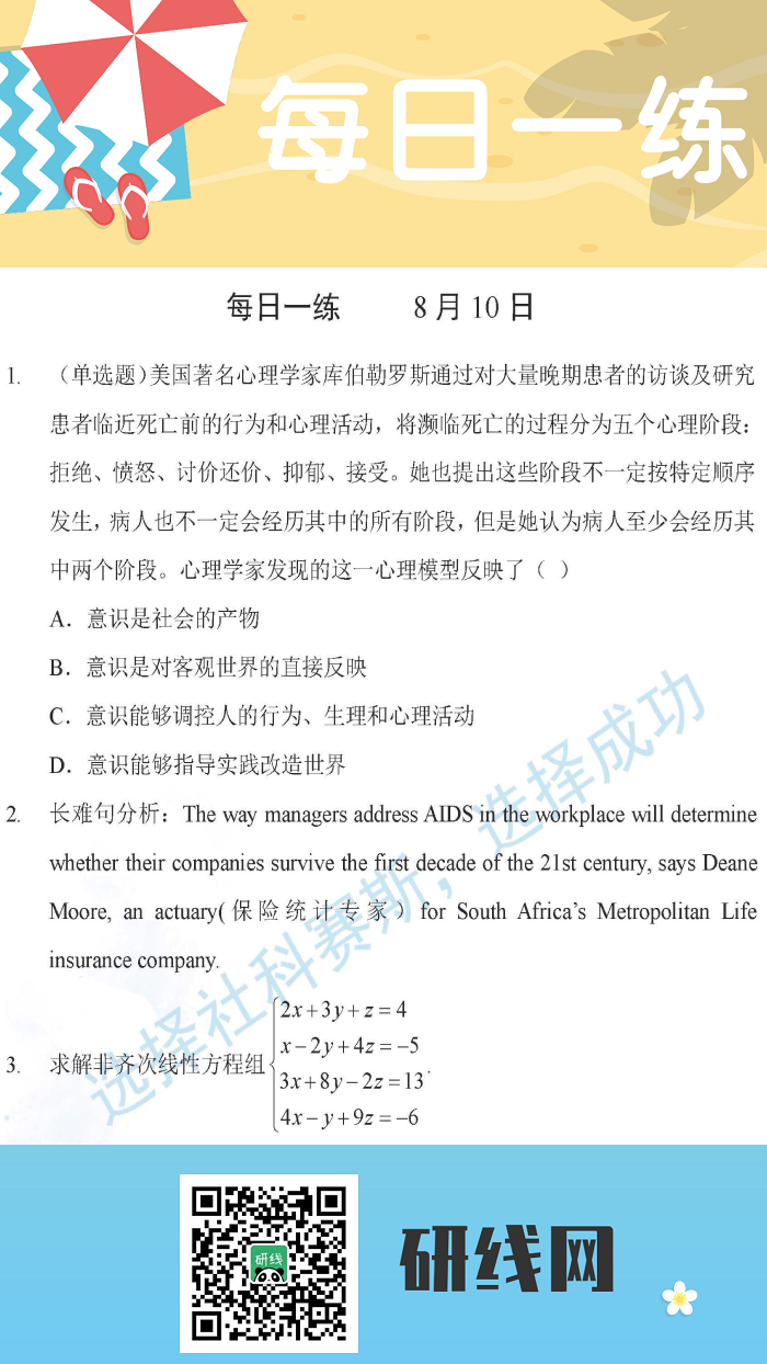 以上就是今日每日一練的全部內容,跟著每日一練,考研輕松復習!更多考試練習,點擊考研每日一練!