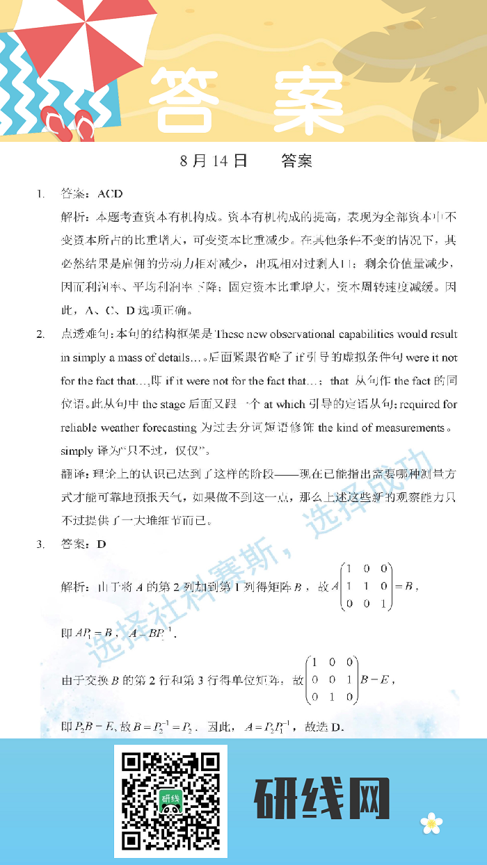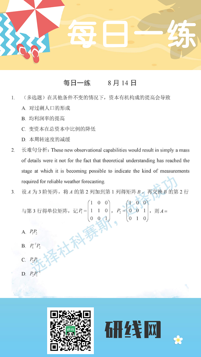 8月14日:2020考研學碩每日一練以及答案