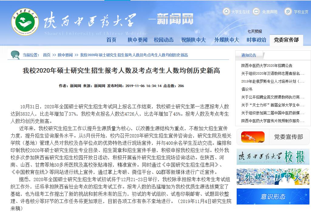 以上就是“2020考研報名人數 | 陜西中醫藥大學2020考研報名人數為4726人,較去年增長45%”的全部內容!2020考研總人數是多少還不確定,但有一點可以肯定,考研人數必定將逐年遞增。希望大家抓住機會,早日考研成功!