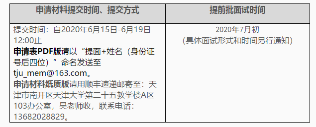 1.提前批面試申請表:在天津大學MEM項目的網站上(http://mem.tju.edu.cn)下載后填寫;