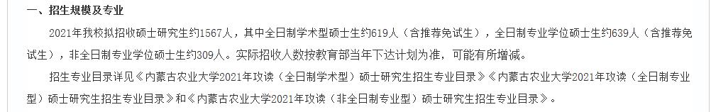 考研院校公告:內蒙古農業大學2021年與2020年考研招生人數信息變動解析