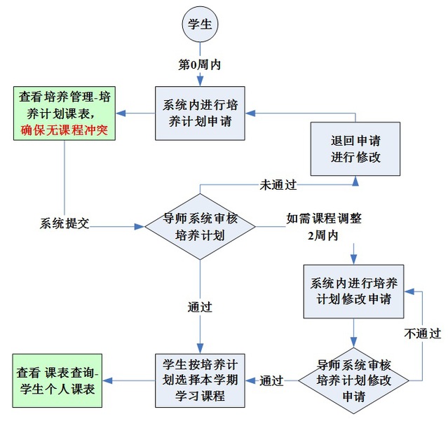 5、學生須于開學報到時與導師共同商定個人培養計劃,個人培養計劃包含學生攻讀學位所必須完成的課程及必修環節,學生應在導師的指導下,根據個人發展需要在滿足學科培養方案要求的前提下制定個人培養計劃,并在系統中進行培養計劃申請,提交導師系統審核通過后,方能進行選課。原則上個人培養計劃一經制定不再修改,特殊情況下,學生可在允許的時間范圍內(通常是每學期開學前2周)在系統中提交培養計劃修改申請,導師審核通過后,方能修改。