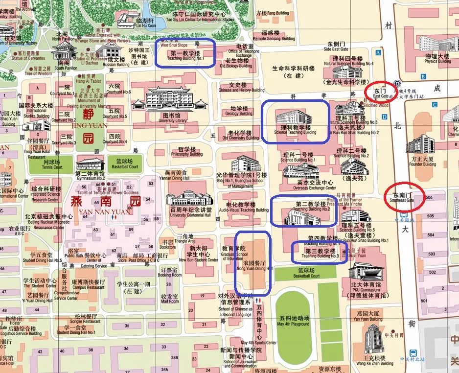 在校本部二教、三教參加考試的考生,建議從地鐵4號線北京大學東門站D口出,由東南門進入校園。
