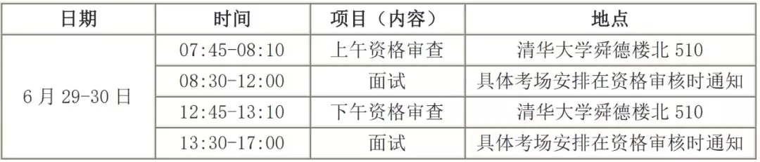 三、面試時間:2019年6月29、30日 8:30-12:00,13:30-17:00