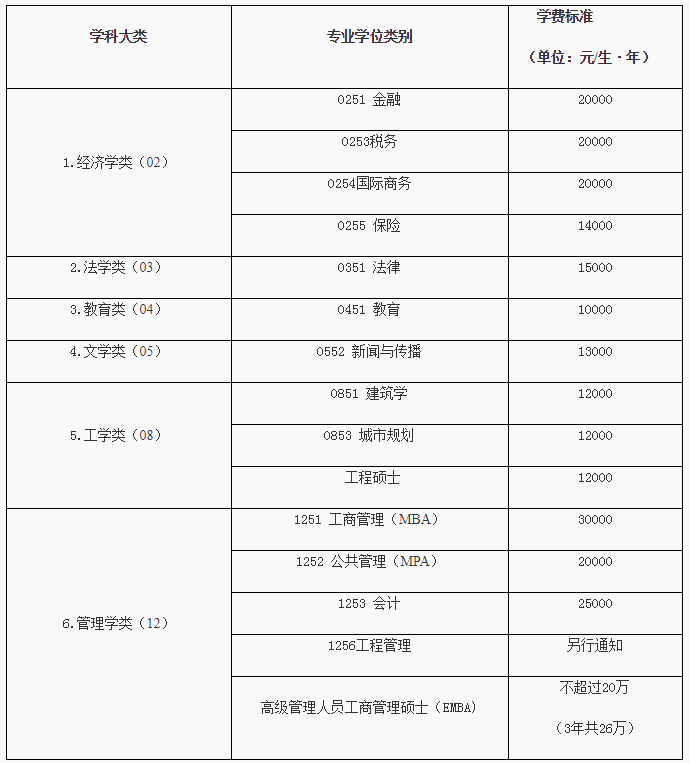 非全日制碩士研究生各學(xué)科領(lǐng)域?qū)W費(fèi)標(biāo)準(zhǔn)見下表: