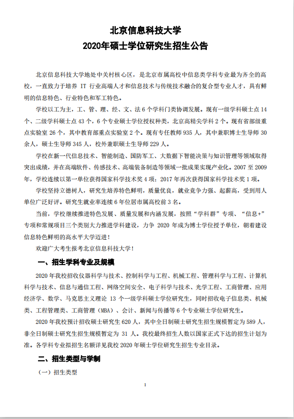 以上就是“北京信息科技大學2020年碩士學位研究生招生公告”的全部內容!更多2020年招生簡章信息,盡在“招生簡章”欄目!