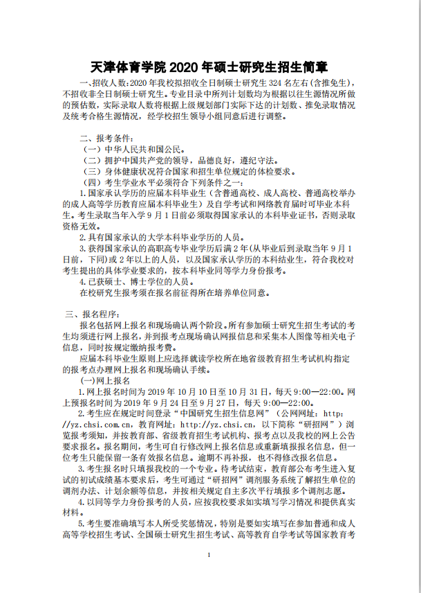 以上就是“天津體育學院2020年碩士研究生招生簡章”的全部內(nèi)容!更多2020年招生簡章信息,盡在“招生簡章”欄目!