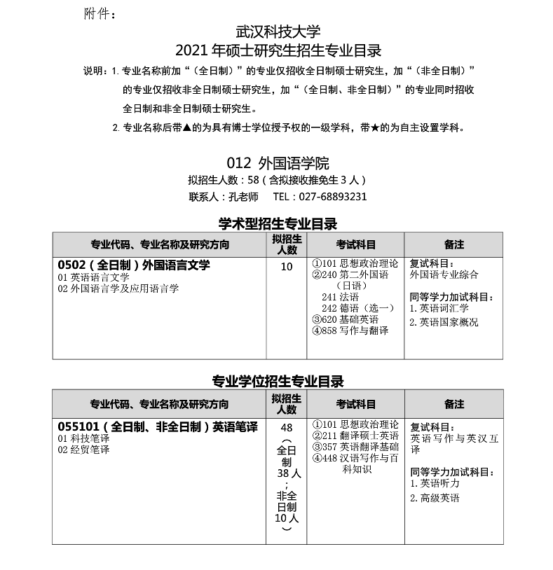 以上就是“2021考研招生簡章:武漢科技大學外國語學院2021年碩士研究生招生簡章”的全部內容!更多信息盡在招生簡章欄目,??佳谐晒?!