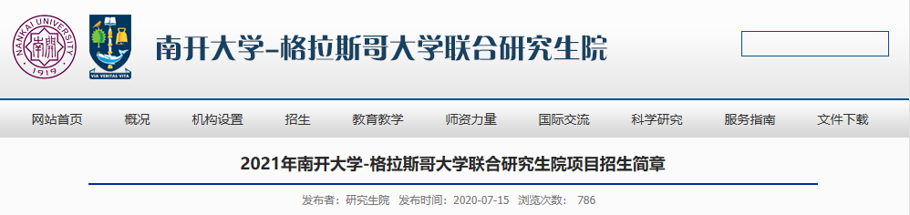 2021年南開大學-格拉斯哥大學聯合研究生院項目招生簡章