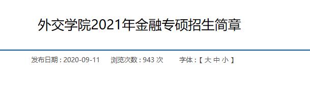 外交學院是外交部唯一直屬高校,2017年進入世界一流學科建設高校行列。我院2021年繼續面向全國招收金融碩士專業學位研究生。