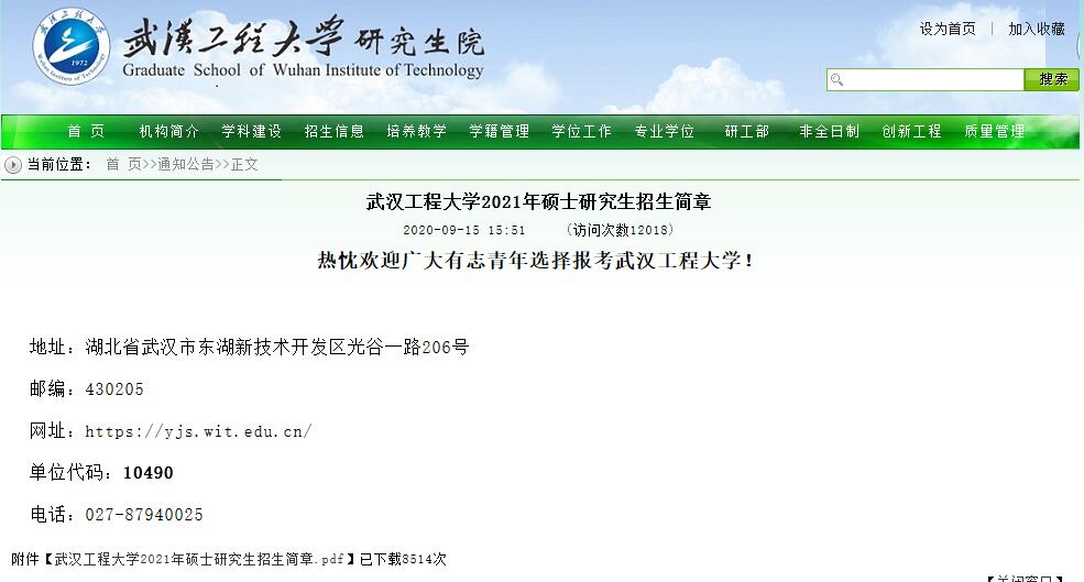 以上就是“2021考研招生簡章:武漢工程大學2021年碩士研究生招生簡章”的全部內容!更多信息盡在招生簡章欄目,祝考研成功!