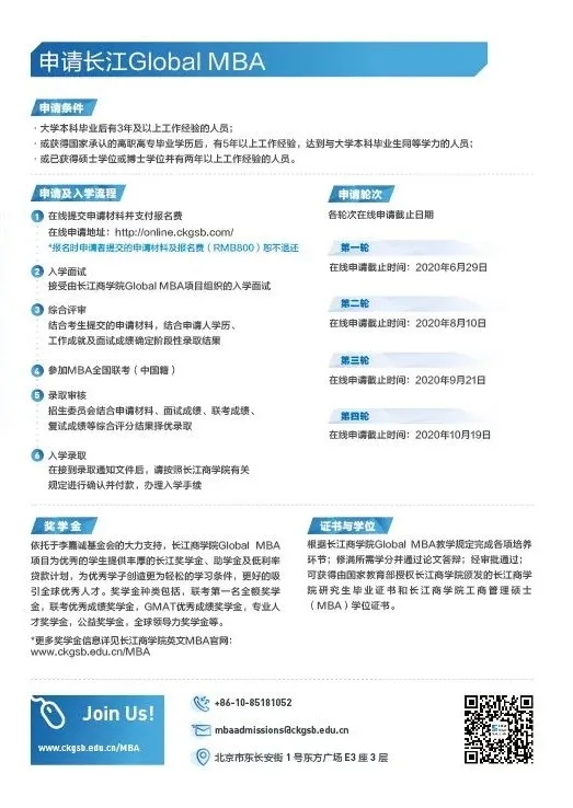 以上就是“2021考研招生簡章:長江商學院Global MBA 2021年招生簡章”的相關內容,祝大家成功!