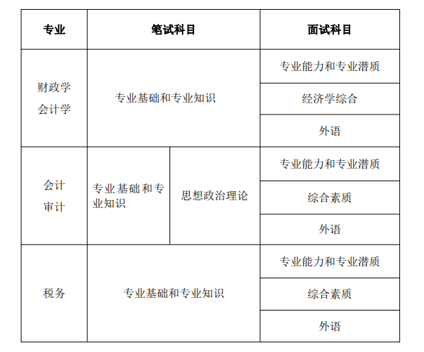 2.方式:筆試考試科目除全國(guó)統(tǒng)考和聯(lián)考科目外,其它科目由財(cái)科院命題,每科考試時(shí)間為3小時(shí),詳細(xì)考試科目及相關(guān)要求等請(qǐng)見(jiàn)《初試目錄》《準(zhǔn)考證》。