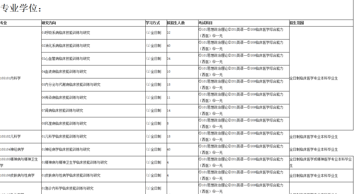 2、初試科目:101思想政治理論、201英語一、204英語二、301數(shù)學一、302數(shù)學二、306臨床醫(yī)學綜合能力(西醫(yī))、307臨床醫(yī)學綜合能力(中醫(yī))為全國統(tǒng)考科目,有關考試內容請參照教育部統(tǒng)一編制的考試大綱。其他科目均由我校組織命題,相關要求請參見附表2。