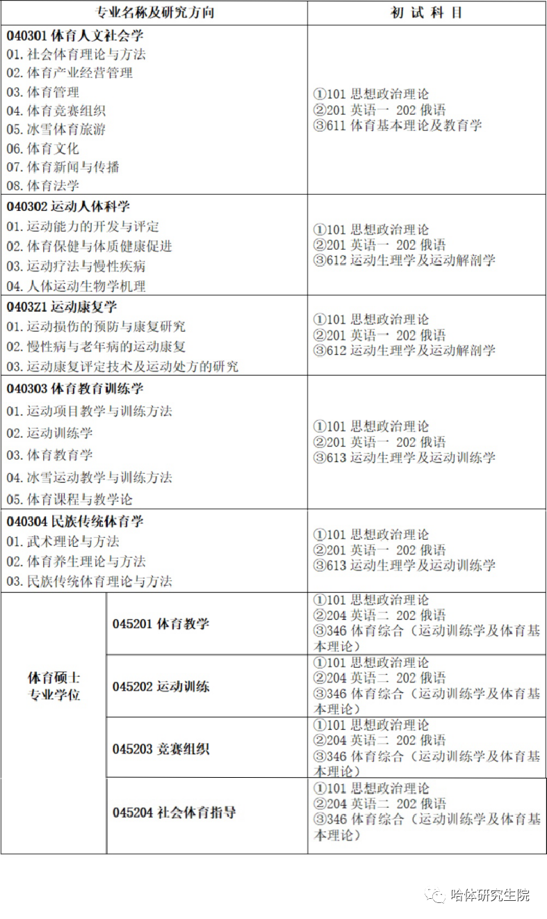 哈爾濱體育學院2021年碩士研究生招生目錄