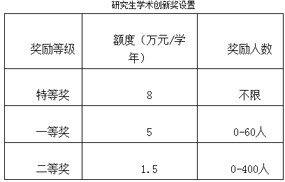 研究生學(xué)術(shù)創(chuàng)新獎(jiǎng)以“高端引領(lǐng),鼓勵(lì)拔尖”為主要目的,是對(duì)研究生學(xué)術(shù)科研水平及創(chuàng)新能力的綜合評(píng)定,具體設(shè)置及標(biāo)準(zhǔn)如下:
