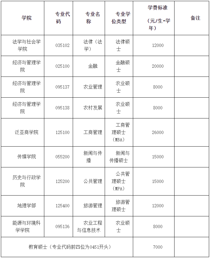 | 經(jīng)濟(jì)與管理學(xué)院 | 95138 | 農(nóng)村發(fā)展 | 農(nóng)業(yè)碩士 | 8000 |